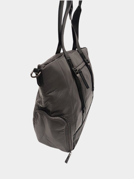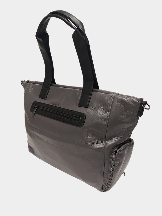 Τσάντα Ώμου Γκρι με Μαύρες Λεπτομέρειες Chris Borsa. Τσάντα ώμου χειρός με δυο χερούλια. Γκρι ποντικί με μαύρες λεπτομέρειες και μαύρα λουριά ιμάντα.Στο μπροστινό μέρος τσέπη που κλείνει με φερμουάρ. Μεγάλη άνετη και πρακτική. Στα πλαϊνά της τσάντας υπάρχουν δυο θήκες επιπλέον που κλείνουν με φερμουάρ ασημί μεταλλικά.